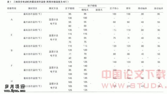 2.2.2.7 检查电动机外壳有无过热现象并注意电动机的温升是否正常,轴承温度是否符合制造厂的规定(对绝缘的轴承,还应测量其轴电压)。三相异步电动机的最高容许温度和最大容许温升见表1。