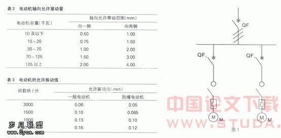 2.2.2.9 检查电动机的轴向窜动(指滑动轴承)是否超过表2的规定。测量电动机的振动是否超过表3的数值(对容量为40kw及以下的不重要的电动机,可不测量振动值)。