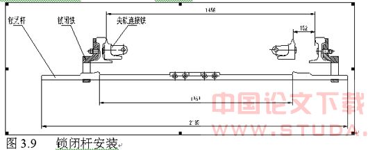 c.将锁闭杆按图3.9所示位置装入锁闭框内。锁闭杆为两段式,中间为绝缘连接,先将两段进行中间连接,再穿入锁闭框内,调整锁闭框使锁闭杆在锁闭框内摆放平顺,不别卡。
