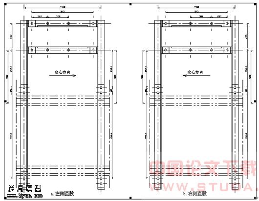 长基础角钢与角形铁的连接孔加工位置应与道岔安装左、右侧(面向岔尖),保持一致,连接孔中心应在角钢安装水平面的中心轴线上,前后左右偏差均不得超过1mm,如图3.4。由于现场加工条件限制,为保证精度,可在订货时将加工尺寸提供给厂家,由厂家在生产时一并加工,但左、右侧及直线、曲线侧安装的数量必须事先统计清楚。