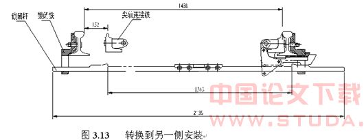 分动外锁闭装置要求尖轨在牵引点(锁闭杆中心轴线)处的动程为152mm,即道岔锁闭状态时斥离尖轨与基本轨在锁闭杆中心轴线处的开口距离。