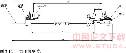 h.按照步骤c、d、e安装另一侧锁钩、锁闭铁和固定螺栓,如图3.14。