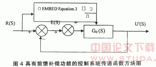 根据精密丝杠加工工艺特点,考虑实际补偿中机械滞后对补偿结果的影响,引入一种误差前馈补偿控制方法。将该误差反馈到输入端,即相当于输入信号R(S)经传递函数 EMBED Equation.3 加到输入端,形成新的具有前馈补偿功能的系统,其模型如图4所示。