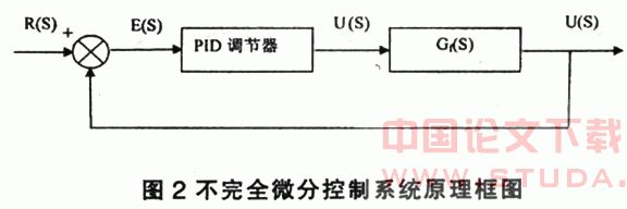 PID调节器中的微分作用容易引进高频干扰。当干扰信号的频率很大时,即使信号的幅值很小,经微分后,由于频率的作用,也会使微分量的幅值变得很大。为抑制高频干扰,可在数字调节器中串接一个低通滤波器,如图2所示。