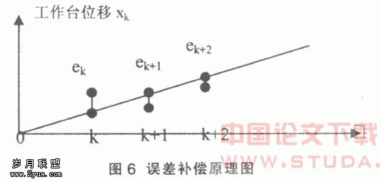 在采样点k处,对应工作台位移误差ek,在区间[xk,xk+1]内,机床本身新产生的误差以及按照误差ek补偿后在(k+1)处仍有误差ek+1。该误差作为下一个区间[xk+1,xk+2]补偿依据。这说明补偿动作总是滞后于误差的产生。较理想的修正方法是在区间[xk,xk+1]内将误差ek+1补偿掉而不是在区间[xk+1,xk+2]内进行补偿。