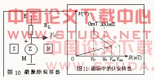 磁敏Z-元件在磁场中,Vf向右平移增大,磁场越强,Vf增加的越多,见图11。电压灵敏度ST等于导通电压Vf的增量DVf与磁场变化增量DB之比。