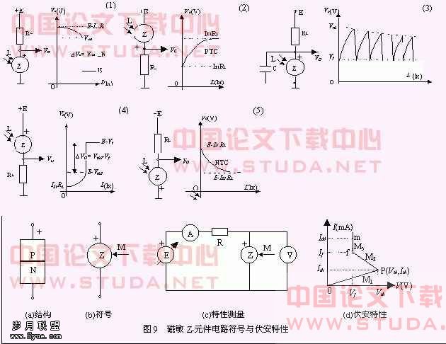 磁敏Z-元件的伏安特性,应当在无磁场的情况下进行测量,图9(c)是伏安特性测量电路,正向伏安特性的测量电路与方法与温敏Z-元件的相同[6]。