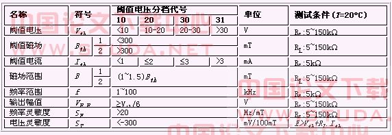 磁敏Z-元件的技术参数列于表3,磁敏Z-元件的分档代号有两个,一个是Vth,共分四档;另一个是阈值磁场,共分两档。磁敏Z-元件的技术参数符合QJ/HN003-1998。