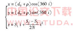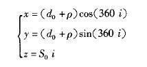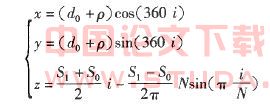 以上的分析推导内容是设计变距螺杆的理论基础。通过这些公式可以编写函数出对应于供送件运动任意时刻的位移螺杆上螺旋线的位置,进而确定扫描特征的扫描轨迹。