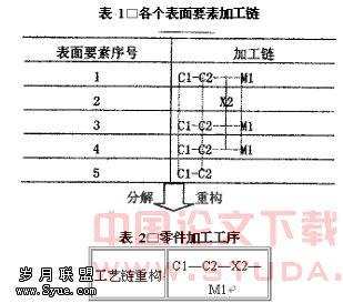 本系统通过对零件的信息进行整理,使之成为各个表面要素。系统对表面要素自动生成其加工链,通过对加工链进行分析与重构、组合,可以很好地创成出零件的工艺。