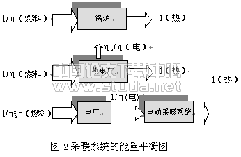 对于电动采暖系统,所耗电能由电力系统提供,于是: ![]()
