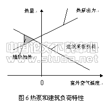 但是,电动热泵系统的不足之处是设备运行性能易受环境条件的限制。风冷热泵对气候的要求较高,一般不适于冬季气温寒冷的城市采暖供热。随着气温的降低,热泵的出力反而减小,因而往往需要辅助加热装置,如图6所示。一般环境温度在-5℃以下后,热泵的工作状态明显恶化,在一定的温湿度条件下会在空气侧换热器翅片管的表面结霜。水源热泵在需要同时制热制冷的场合使用较为有利,在有清洁的江河湖水的地方也可使用。