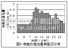 在经济分析中,采暖系统消费和产生单位电量的价值在不同时刻是不同的。小时级的单位电能生产和消费的价值可由电能价值当量衡量和反映[2]。电力负荷高峰期和低谷期电能价值当量是不同。图4给出了我国某电网小时级电能价值当量典型日分布。