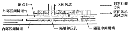 4.1 活塞风主要作用在列车运行的区间隧道内和两端车站行人出入口。由于双线隧道中间隔墙卸压孔的存在,一侧隧道有列车通过时,另一侧隧道内会产生2m/s左右的风速,持续时间要较有列车通过侧短一些。列车在站台起动后对后方隧道能引起2~3m/s左右的活塞风速,列车刹车后其前端进入站台时,活塞风还在持续。