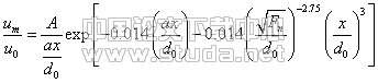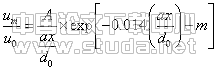 巴哈列夫把自由射流看作受限射流的极限情况,将受限度 以e的指数形式引入式(1),得以受限射流轴线流速表示式: