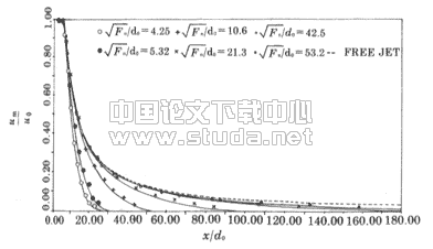 从图中可见,轴线流速的变化取决于射流的受限度