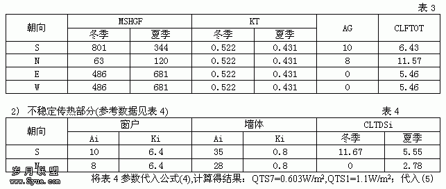 3.2.1通过窗户的太阳负荷QSOL将表3数值代入(1)式得到计算结果: