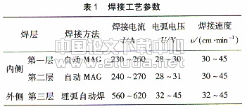 (9)焊接顺序 内侧采用自动GMAW焊焊两层,外侧采用自动埋弧焊焊满。