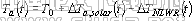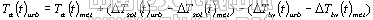 在建筑群集地区,小区不同位置的热环境受相邻位置的建筑材料、结构和布局、小区下垫面、绿化情况、水景设施以及和家用等人为排热因素的影响,可能会使局地气温出现热岛或冷岛、滞后或提前等现象。CTTC(Cluster Thermal Time Constant)集总参数模型把特定地点的温度视为几个独立过程温度效应的迭加,用公式表示如下[1]: