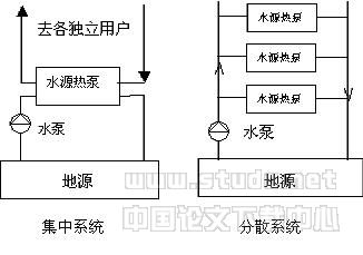 用中央水泵,采用水环路方式将水送到各用户作为冷热源,用户单独使用自己的热泵机组调节空气。一般用于办公楼、学校、商用建筑等,此系统可将用户使用的冷热量完全反应在用电上,便于计量,适用于目前的独立热计量要求。