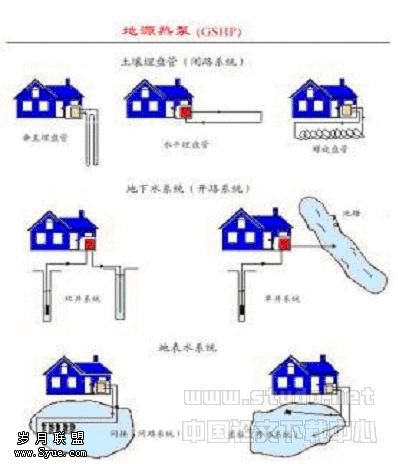 地源按照室外换热方式不同可分为三类:(1)土壤埋管系统,(2)地下水系统,(3)地表水系统。