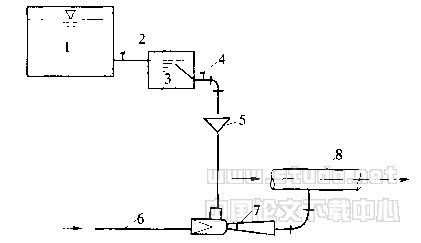5—漏斗;6—高压水管;7—水射器;8—原水管