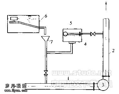 1— 吸水管;2—出水管;3—水泵;4—水封箱;5—浮球阀;6—溶液池;7—漏斗