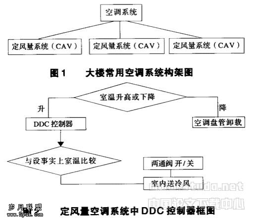一般大楼常用的空调系统有CAV、VAV、VWV等,各有不同操控方式,都可以用DDC控制。如图1。