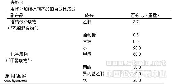 两种外加碳源使用两工业加工副产品。第一种副产品是酒精饮料生产的混合废物。第二种副产品是化工厂的废物,甲醇、异丙基乙醇和丙酮构成。它主要成分是甲醇。表格3显示了两种副产品的成分。贯穿这篇论文,它们称为“乙醇混合物”(酒精饮料废物形成的)和“甲醇混合物”(化学废物形成的)。
