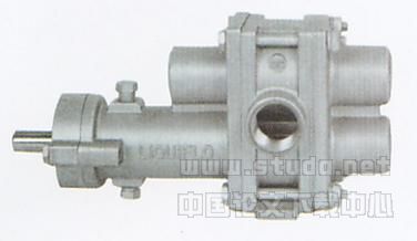 由上图可以看出:因为不锈钢齿轮泵的每转排量是一定的,即不锈钢齿轮泵每转一转,从齿轮泵流出的添加剂量一般是固定的。我们现在只要调整不锈钢齿轮泵的转速即调整供给它动力的液压马达的转速即可调整不锈钢齿轮泵的输出流量。我们现在只需要选择合适的液压马达和不锈钢齿轮泵即可。设计要求添加剂的流量范围为0~45l/min,我们现在先根据流量要求选择合适的不锈钢齿轮泵(尽量选小排量的齿轮泵,这样的结果是齿轮泵的输出流量稳定、脉动小),工作时使泵转速从零起步到某一个转速能够覆盖我们的流量范围要求。但是从零起步齿轮泵的工作稳定性根本无法达到,据笔者调查:市场上不锈钢齿轮泵生产厂家很少,齿轮泵的最小稳定转速为500r/min(黄河液压件厂生产),即齿轮泵输出的流量根本无法从零起步,根本无法输出小流量。而且齿轮泵在低转速下(500r/min)稳定性很差。经我们调查,德国斯可金格齿轮泵勉强可以使用,而且该泵的体积很小约110mm×70mm×70mm(长×宽×高),但是该泵价格很高约1.3万元人民币。进口不锈钢齿轮的外形如下图2所示: