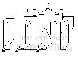 1 配水槽 2 循环泵 3 蠕动泵 4 产酸反应器 5 中间稳定槽