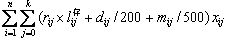 (≥1)表示货物的存放时间;dij表示行包到站里程;mij表示行包保价金额。行包的保价金额是行包价值的重要体现之一,在其他条件相同的情况下,可以把保价作为是否装车的衡量标准。这样可以做到行包配装的进一步公平,同时也可以促进保价收入。公式(8)中的四种权重在具体使用时可根据要求不同而作相应的比例浮动。