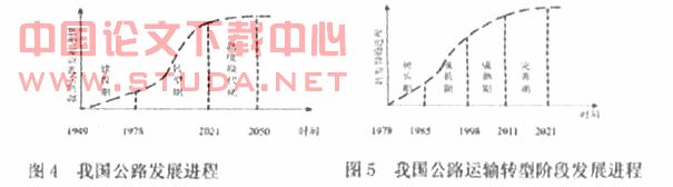 前面已经将我国公路运输的发展大致分了三个阶段,也阐述了这三个阶段各自的特征,因此可以刻画出我国公路运输整个发展阶段的曲线。(如图4)