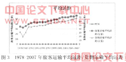 (3)平均运距分析。公路的客运平均运距从1978年的35公里,增加到2007年的56公里。货运平均运距从1978年的32公里,增加到2007年的69公里。分别增长了60%和115%。