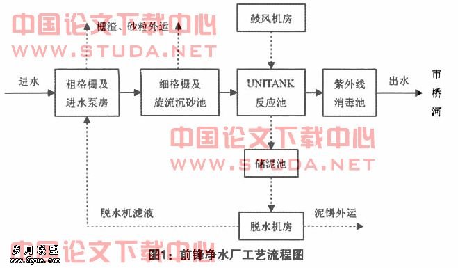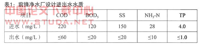 前锋净水厂位于广州市番禺区,占地面积20ha,是番禺区第一个大型城市生活污水处理厂。一期工程设计规模10×104m3/d,服务面积166.26km2;采用UNITANK工艺,于2004年4月建成。自运行以来,该厂的出水水质各项指标均能达到设计标准。