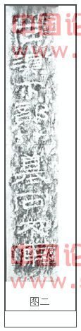 从这批石头外观来看,基本上都是长方体,表面粗糙不平,看样子是经过简单的处理之后便被刻上了名字,并且有的石头凿有铆口(如图三)。从完整的石头来看,除了一块特殊的石头和残砖外,基本上每块长约140厘米,宽约50厘米,并且每块上面都用隶书刻一人名,如“虞少文石”、“云伯山石”、 “何吴石”、“何武”、“许阳”、“苏文遼”、“庞君髙”、“鲁孟山”等。
