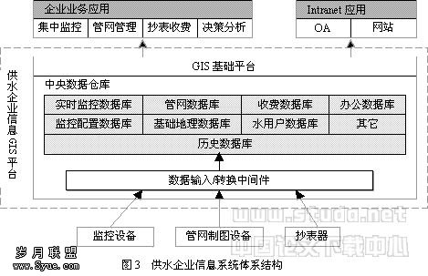 以GIS平台为核心的供水企业信息系统的体系结构如下图3所示: