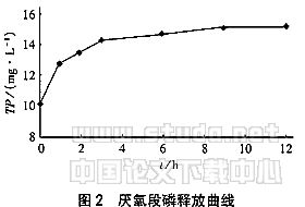 由图2可知,磷释放主要集中在前3 h内,之后的9 h,磷释放现象虽有,但幅度很小。聚磷菌只有充分释放磷后,才能很好地过量摄取磷,从而达到生物除磷的目的。另一方面,厌氧时间过长,将导致废水在整个反应器中的停留时间过长,很不。因此,依据试验曲线,确定厌氧段所需时间为3h。