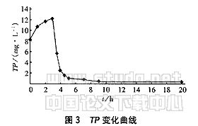 试验用反应器是有机玻璃制成,内径为15cm,反应器内有效容积为18L,其中沉淀池容积为2L。其试验进水的TP平均为10.0mg/L,为370.0mg/L,温度为25℃,好氧状态的DO平均为5.5mg/L。