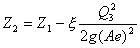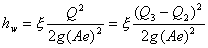 式中,Z1为库水位,V1为库区1-1断面的行近流速,Z2为事故闸门门井内的水位,V2为事故闸门门井内水位的变化速度,hw为1-1断面和2-2断面间的局部水头损失,主要由事故闸门引起,如果忽略事故闸门处水流的局部水头损失系数ξ的变化,hw可近似表示为: