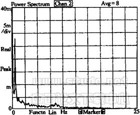 图3 作用水头103m中闸室开度1.0事故闸门后缘脉动频谱曲线 |