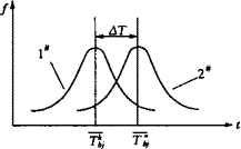 ,其分布曲线如图2中1#,则其按期望值完成的概率为0.5;而非主导线路按该期望值完成的概率为p。由于两条线路相互独立,因而,合成后的完成概率为0.5p。设将在主导线路持续时间期望值Tbj的基础上,将其延长,延长之后其方差不变,而仅其持续时间延长了ΔT,并使图2中曲线2#在t=Tbj处的累计概率为0.5p,这种修正方法可称为当量概率法。此时,ΔT可用下式计算。