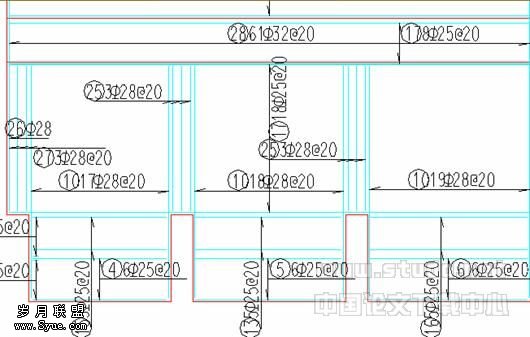 本系统已在三峡等工程中运用,取得较好的应用效果。图9~10为本系统自动生成的配筋图实例(由于图面篇幅,图中只显示了局部)。图中标注信息正确完备,标注文本清晰,无重叠,达到了施工图的要求。通过运用本系统,工程师从琐碎的制图和统计活动活动中被解脱出来,大大提高工作效率。