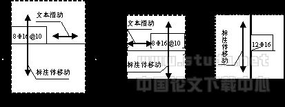 如图7(a)所示。其处理包括两种方式:标注文本滑动和标注体移动。区别是前者只是调整标注文本的位置,标注线“静止”;后者在调整了注文本的位置后,标注线随之也要象像皮条一样相应“扯”动。在实际处理中,将这两种方式结合起来运用:先在标注底线上逐步滑动标注文本,寻找理想位置,如未果,再移动标注体,在新的底线上滑动标注文本,如此反复,直到找到理想位置为止。