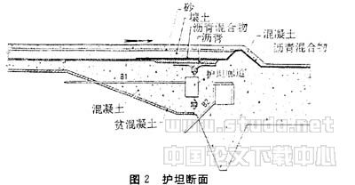施工缝内的弹性沥青水封在某种程度上形成了迂回的相互联系的管网。一个 沥青水封位于右侧护坦和右侧挡土墙(M-1-2)之间;两个竖直沥青水封位于右坝座和 右侧挡土墙(M-1-2)的接头处;在右侧电站厂房坝座和右侧挡土之间的接头处有两个竖直的和两个水平的沥青水封;在左电站厂房块体的连接处有上游和下游竖直沥青水封及上下水平沥青水封;在左侧电站厂房坝座墙和左侧较低挡土墙之间有两个竖直沥青水封并且在左侧挡土墙和电站厂房左坝座之间有另外一个。如图2所示在上游护坦和电站厂房基础之间有两个水平沥青水封位于护坦廊道处。上面的一个沥青水封承抵水库的水压力;较低的一个承抵孔隙水压力。