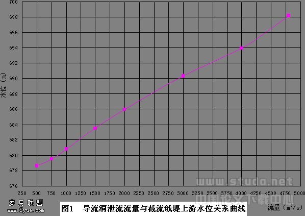 表2、导流洞泄流流量与截流戗堤上游水位关系表