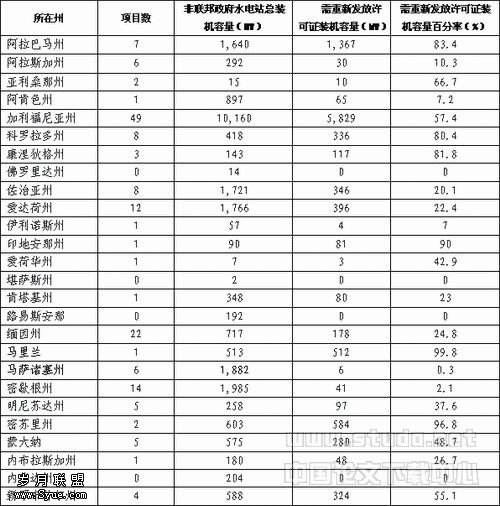 表1 2017年前需重新发放许可证的非联邦政府水电站装机容量