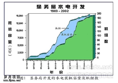 由于其使命是管理贫瘠的西部地区的水资源,美国垦务局开始涉足水电的生产。其所建造的大坝成为主要的电力生产者。尽管水电生产是水资源开发一个附属产品,但其已经成为垦务局事务的一个重要组成部分。其水电产量见图1。