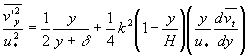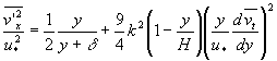 =u2*/2H×[H+δln(δ/(H+δ))]+9/2H2k2{[υ2(a1-4b1)+4(b21-a1b1-2c1)υ+(a1b21-2a1c1+4b1c1)]×(1/υ-2/a1)+1/2×[1/υ2-(2/a1)2]×[2(a1b1-b21+2c1)υ2+2(a1c1-a1b21-4b1c1)υ-2c1(a1b1+c1)]+1/3×[1/υ3-(2/a1)3]]×[a1b21-2 a1c1+4b1c1)υ2+4c1(a1b1+c1)υ+c21a1]+1/4[1/υ4-(2/a1)4]×[-2c1(a1b1+c1)υ2-2a1c21υ]+ a1υ2c21×1/5[1/υ5-(2/a1)5]+lna1/2υ×[-2υ2+2(4b1-a1)υ+2(a1b1-b21+2c1)]+[a1/2-υ]×[(a1+4v)-4b1]-[(a1/2)2-υ2]} | (24) | |