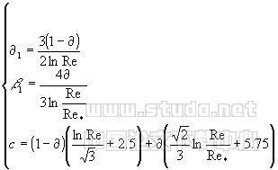 式中u为距壁面y处的时均流速,rl和rt分别为层化和率流的发生率。 vl、vt分别为层流和率流的流速成分布,其它符号参看[13]。